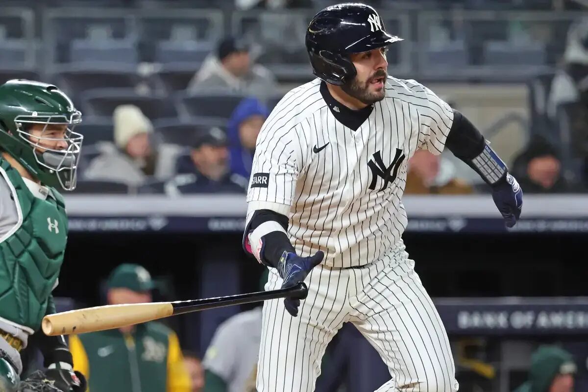 En la derrota por 1-0 de los Yankees ante los Atléticos el jueves, la jugada más peligrosa del equipo fue una secuencia en la séptima entrada que puso a dos corredores en base. Giancarlo Stanton se embasó. Ben Rice conectó un sencillo por el lado derecho que supuso el único hit del equipo en toda la tarde.